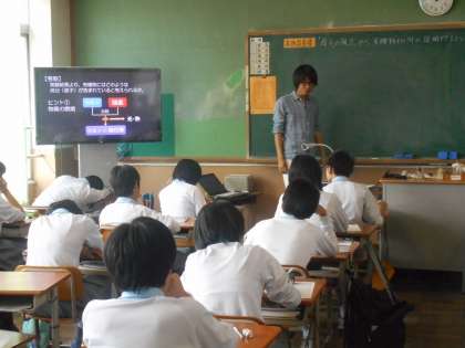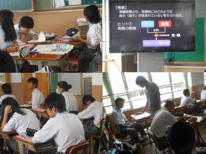 4時間目は2年1組で理科の研究授業です。