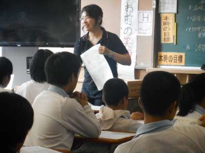 授業の最後は夏休みの宿題を配布しています。「えーっ,多いわ!」「先生,まだあんの!」と生徒の声。夏休み,ゆっくりしたい気持ちはわかりますが,宿題はみんなのためですよ。