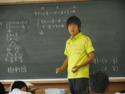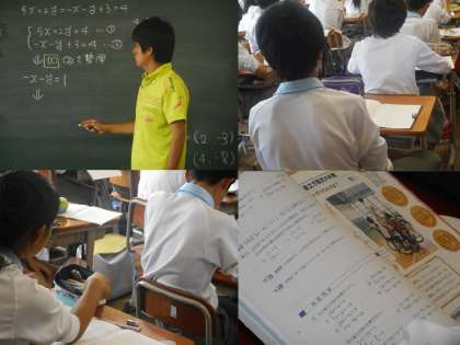 今日の数学の時間は,A=B=Cの連立方程式を加減法や代入法を使って解いていきます。みんな積極的に手が挙がっていましたね。