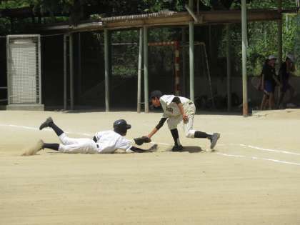 野球部は木津南中学を迎えて練習試合です。1試合目は惜しくも敗れたらしく,2試合目は気合も十分です。