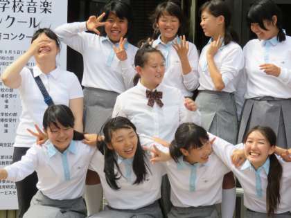 発表後の笑顔です。昨年よりもしっかり歌えていたという評価もいただき,奨励賞を獲得しました。今年の合唱部は1・2年生のメンバーですから,来年こそは入賞を獲得したいですね。