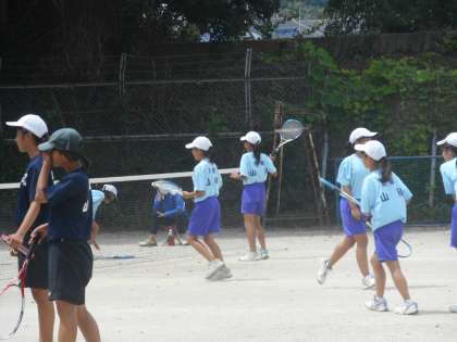 3年生が引退しても大所帯のテニス部です。いつも大きな声で挨拶をしてくれます。元気いっぱいなところは,先輩たちから引き継いでくれました。