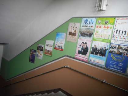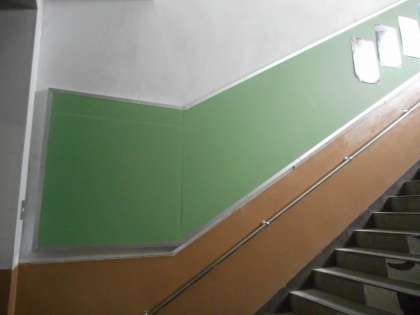 夏休み,管理用務員の森田さんに,4号館の階段のところに掲示板の作成。また,美術室の背面の黒板を取り外して,背面ボードも丈夫なものに張り替えて頂きました。前面のボードも綺麗になり,教室がすっきりしました。