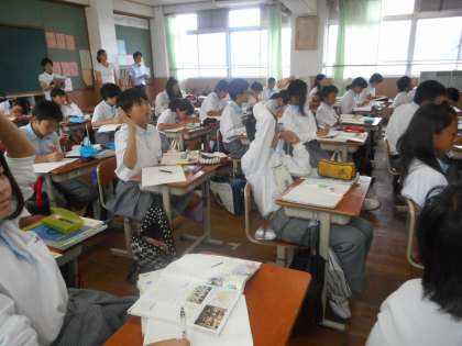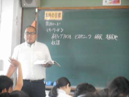 佐藤先生の研究授業です。教科書では「多くの民族が暮らす北アメリカ」という単元のところです。生徒には「なぜアメリカ合衆国には多くの民族が集まるのか?」をテーマに考えてもらいます。
