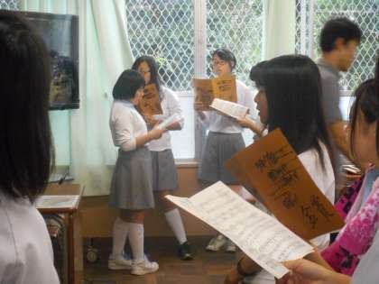 3年校舎の廊下から見ると、2年校舎も朝から多くの教室で歌っていました。明日は2年生を紹介できると思います。
