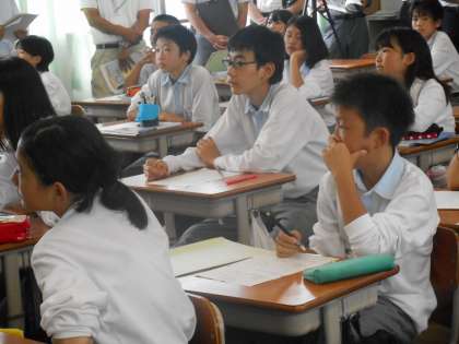 金曜の午後からは東山・山科支部の授業研究です。本校では数学科と育成学級の研究授業を行いました。1年1組と8組が午後からも学校に残ってくれました。