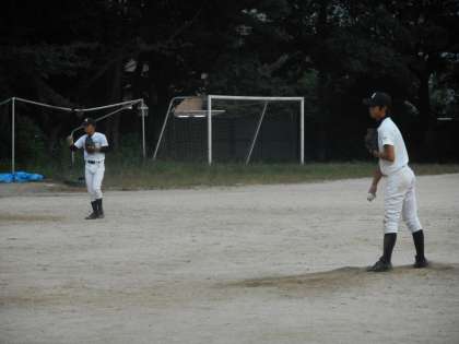 野球部はすでに新人戦が始まっています。惜しくもリーグ戦の初戦をまけてしまい,市内大会に向けて「崖っぷち」になりました。顧問の先生の檄が飛びます!今はちょうど教育実習の上野山先生も手伝ってくれています。