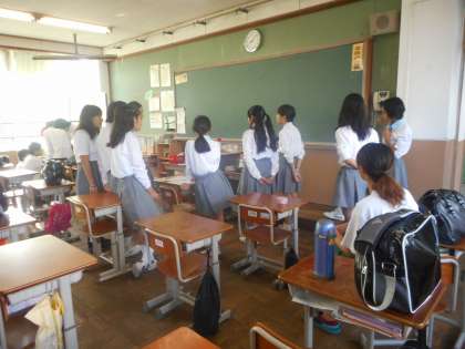クラスの練習開始時間より前,教室では早目に集まった生徒たちが自主的に練習を始めています。