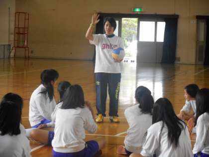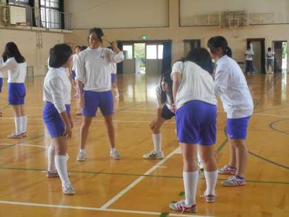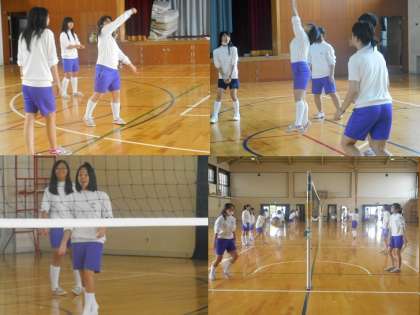 3時間目は鷲見先生の研究授業です。バレーボールの練習とゲームをされました。