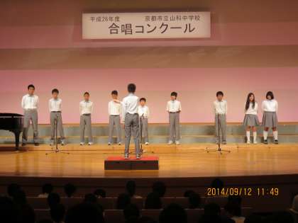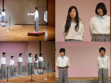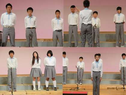 8組の歌は「花は咲く」です。東日本大震災の被災者の方を支援の歌として日本中で歌われています。他のクラスと違って,10人で舞台に立つのは余計に緊張すると思いますが,3年生を中心にしっかり歌えました。