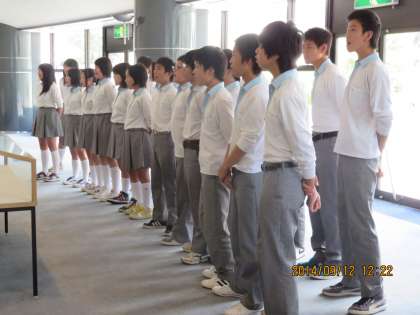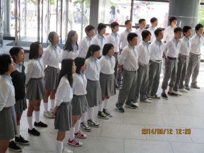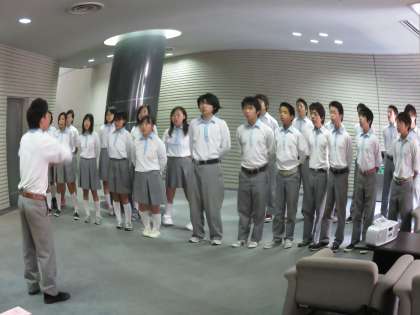 昼食休憩時間も約30分と短いのですが,ご飯もそこそこに練習が始まります。ホールの中では3年生、外の階段付近では2年生。生徒たちの一生懸命の姿があちこちで見られました。