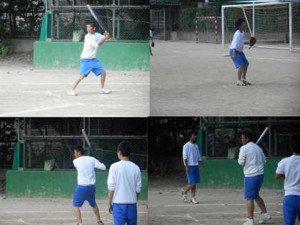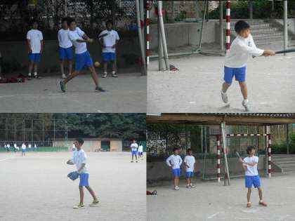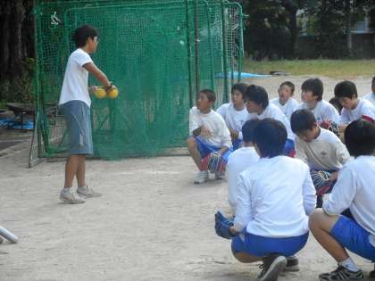 教育実習の上野山先生の研究授業で,内容はソフトボールです。安全に楽しくできるよう工夫しています。
