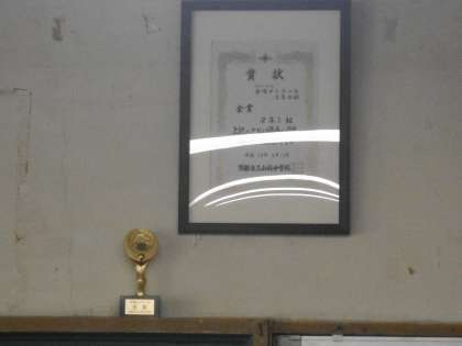 3組の数学の様子です。文字式を丁寧に練習しています。黒板の上には金賞の賞状とトロフィーが輝いてました。