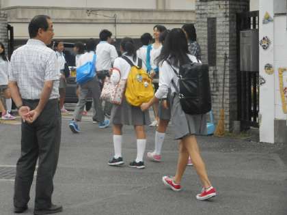 夏休み明け最初のあいさつ運動です。みんな元気に登校してくれています。挨拶ができる人も昨年より増えてきましたが,まだまだ6割ぐらいです。