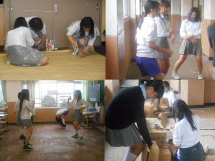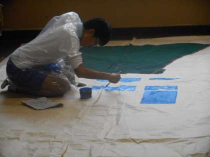 劇の舞台背景や大道具の制作活動に頑張っています。幕間の出し物練習も熱心で,当日が楽しみです。
