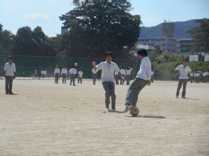 夏のような暑さの中,男子は3年生を中心に元気にサッカーです。