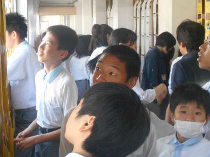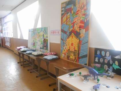 昔のおもちゃや貼り絵貼り絵、恐竜の模型など盛りだくさん。展示鑑賞もみんなでそろって見て回ってます。