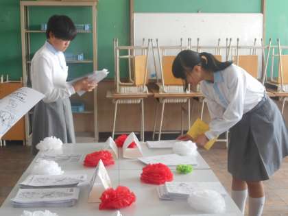 「どれにしようかな?」生徒たちも手にとって楽しんでいます。