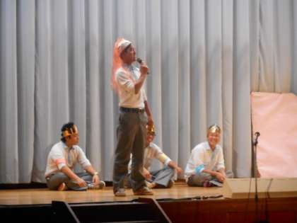 文化副委員長の高橋君の挨拶,校長先生の挨拶に続いて,恒例の生徒会本部によるオープニング劇が披露されました。