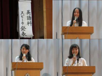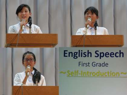 1年生の英語のスピーチのようす。堂々と発表できました。