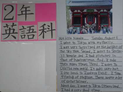 2年生は「DIARY]というテーマで,夏休みの出来事を日記にしています。