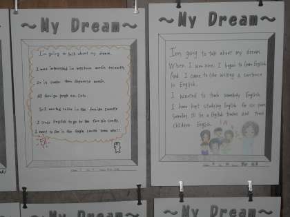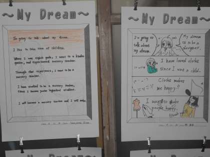3年生は「My Dream」というテーマで自分の夢をレポートにしています。ステージでの発表もありました。