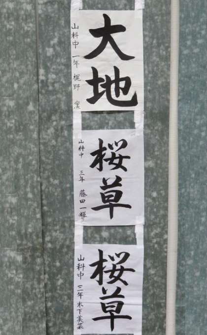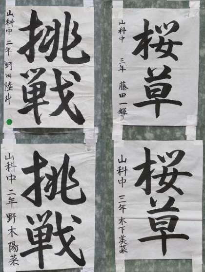 書写の作品も展示されていました。黄色のマークは姉妹都市交換作品のようです。
