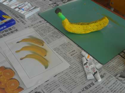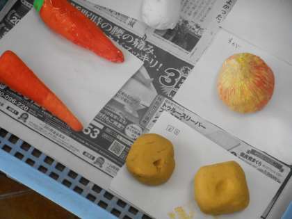 粘土で作る野菜や果物が,そろそろ色もつけて完成に近づいてきました。