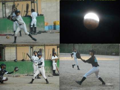 下校時間が終わって,夜のグラウンドからは「皆既月食」が綺麗に見えました。