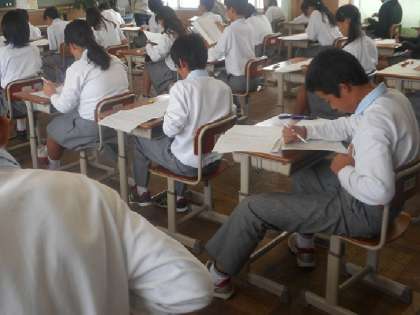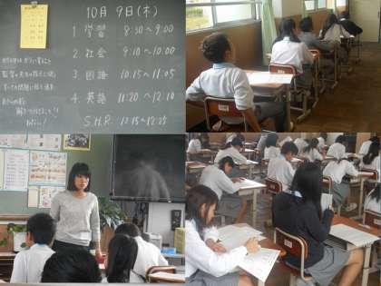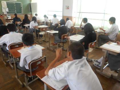 1年生は1時間目が社会,2時間目が国語,3時間目が英語でした。写真は国語のテストのようすです。