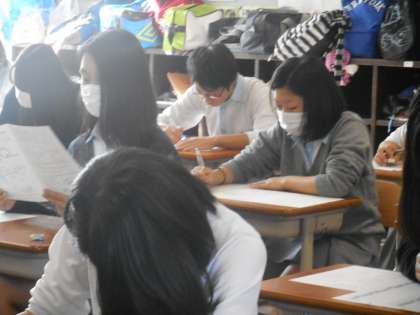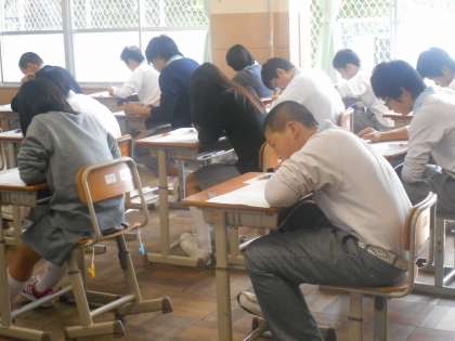 3年生は理科のテストです。さすがに3年生は,どの学年よりも真剣です。