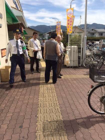 明日から全国一斉に始まる「全国地域安全運動」に向けて,山科区内数カ所で防犯を呼びかける啓発運動が展開されました。山科警察署や山科区役所をはじめ,各学区自治連,少年補導,交通対策協議会に小中学校が参加しての行動です。山科区長や警察署長と一緒に今年の「ミス山科」んお方も回ってこられました。