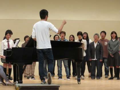 いよいよ歌の練習です。大人の声が入るので,厚みのある合唱になっていきます。