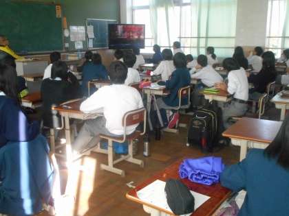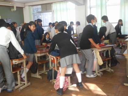 今日はそれぞれの学級で独自の取り組みです。テストの反省や1組では文化祭の学年劇のビデオをみたり,4組では席替えが行われました。