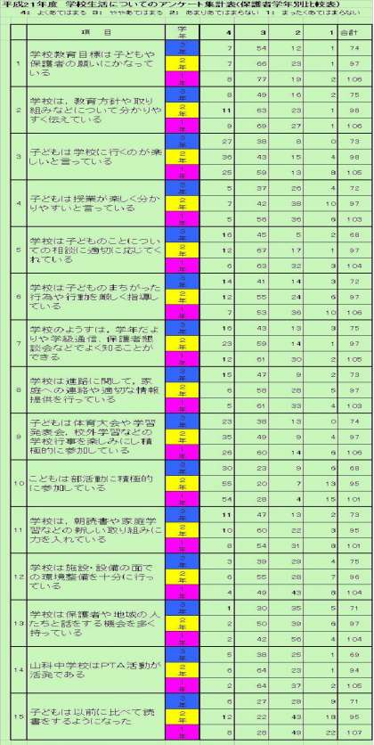 保護者の方へ アンケートについてご提出ありがとうございました。多くの生の意見をいただきました。一つ一つの意見を真摯に受け止め、少しでも改善できるように取り組んでいきたいと思います。
