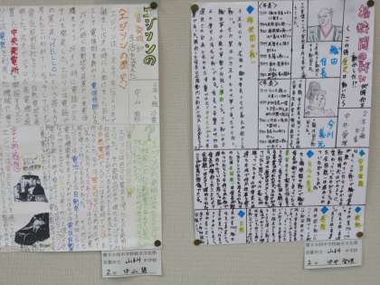 2年生の社会科「歴史が動いた」も平手君をはじめ,6人の作品が展示されていました。