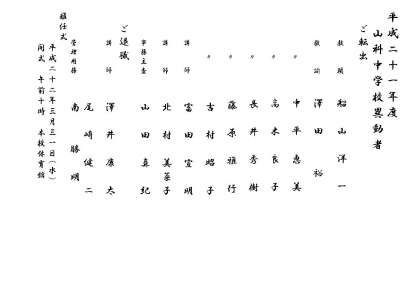 平成21年度 山科中学校教職員異動者を発表致します。離任式は上記の通り、