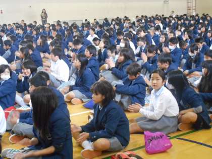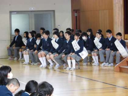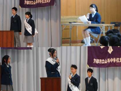 「私が○○になったら・・・」みんな力強く訴えてくれ,聞く態度もとてもよい立ち会い演説会でした。新しい役員の皆さん,今年の本部に負けないよう頑張ってください。