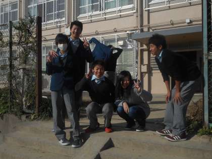 日差しがあり暖かい昼休みです。たくさんの生徒たちが元気にグラウンドで遊んでいます。