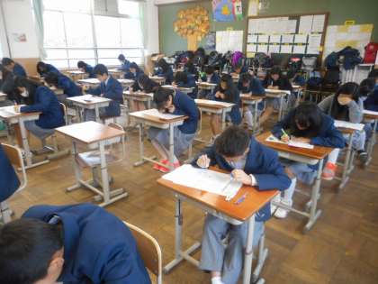 1年生は理科のテストのようすです。