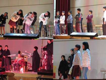 山階南では5年生の古典の朗読発表と6年生の学級劇を見せて頂きました。