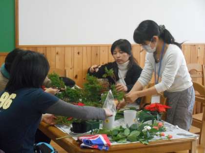 クリスマスらしい色鮮やかでクリスマス・リースのような雰囲気の物ができました。最後に皆さんで記念撮影です。