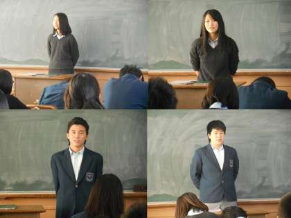 今日の授業はスピーチによる表現力。3年2組では一人一人が3年間の思い出や感謝の気持ちを語っています。