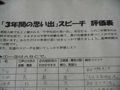 みんなも発表を聞きながら,話し方や声の大きさな,内容などを評価しています。