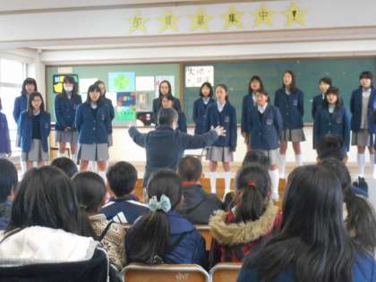 合唱部の歌と剣道部の活動のようすです。合唱部は6年生が来る度に,何度も何度も歌ってくれていました。