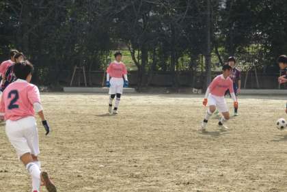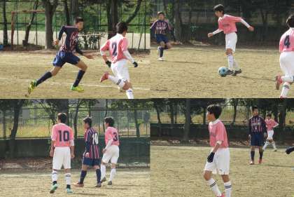 サッカーのカップ戦が小栗栖中学校で開催され,予選を一位で勝ち上がった山科中は勧修中と準決勝で対戦しました。1点を先制され前半は苦しい展開です。