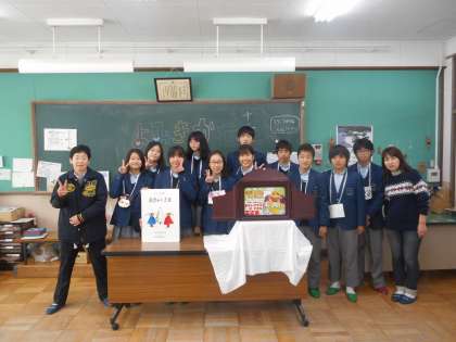 二日目の今日は百々小学校です。放課後の図書ボランティア活動の時間にお邪魔しました。到着して簡単な飾り付けやCDデッキ、紙芝居や絵本の準備をします。