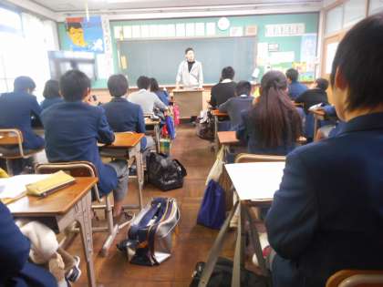 朝読書の後,山内先生が卒業生の成人式について話しておられました。