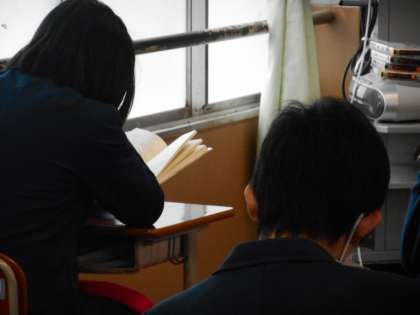 3年生は朝から願書を集めたりと忙しそうです。本を読む人に混じって,勉強をしている生徒もいます。