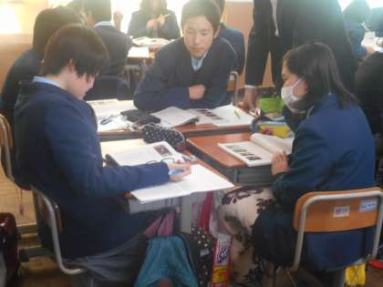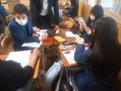 展示の工夫について作者が言いたかったところは?それはなぜか?説明する力が求められます。グループで意見を出し合って,説明できるところまで高めて言ってます。